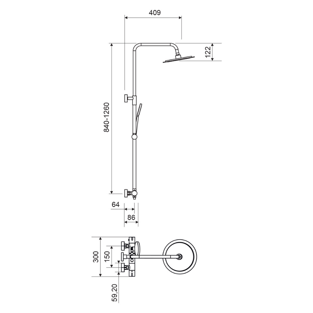 • Columna de ducha termostática, 2 vías