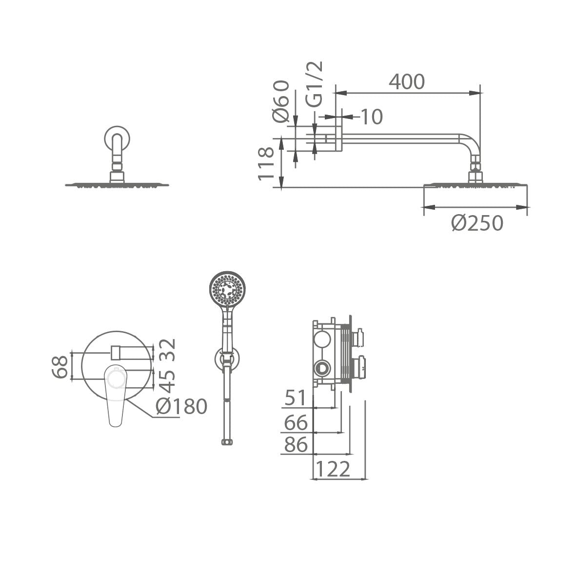 • Tipo: Conjunto empotrado monomando para ducha (solo grifería, no incluye plato ni mampara).