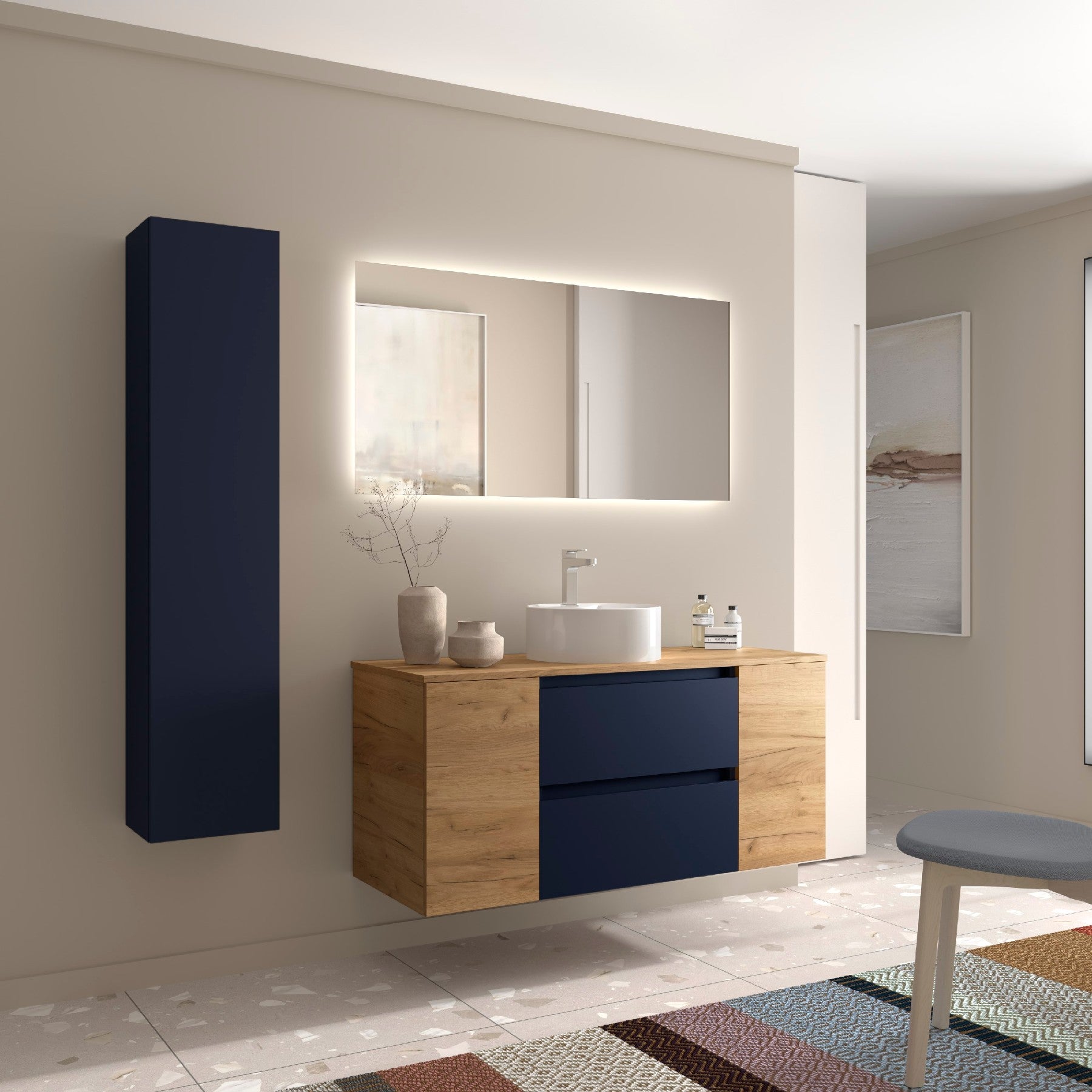 Renueva tu baño con el conjunto BEQUIA de 120 cm de Salgar, una combinación perfecta de estilo contemporáneo, practicidad y diseño atemporal. Este conjunto incluye mueble suspendido de 2 cajones, 2 coquetas con puerta reversible y lavabo de posar LISBOA, creando un espacio elegante, ordenado y funcional.