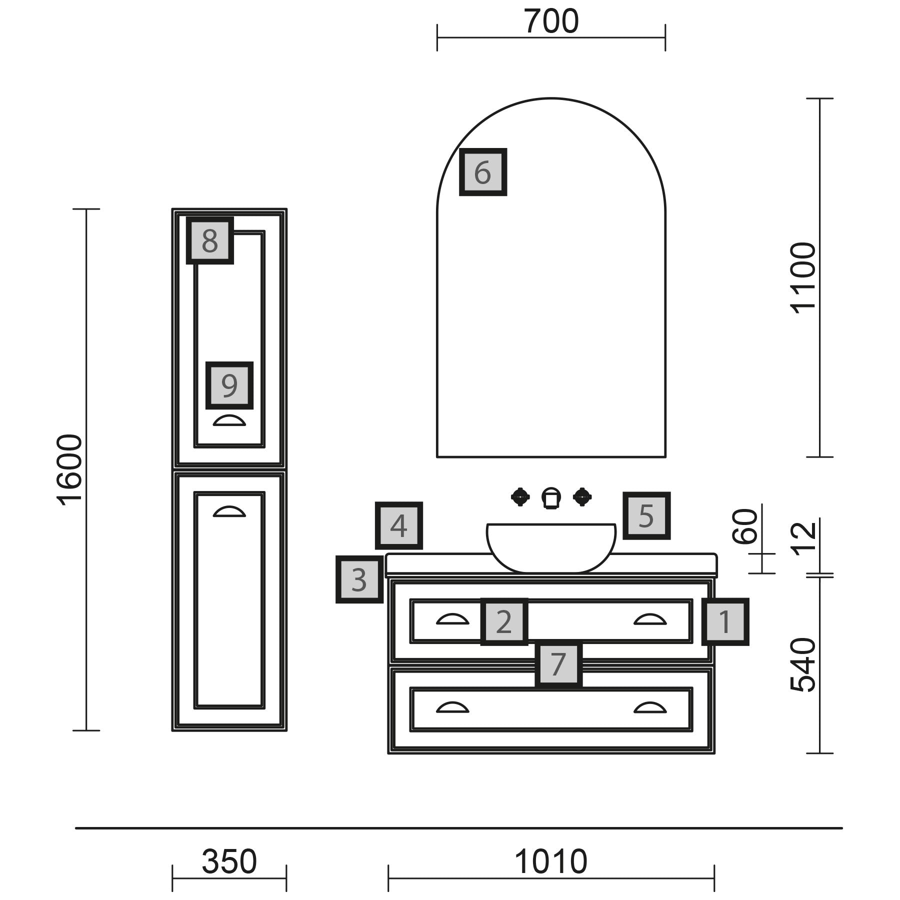 - Mueble RENOIR 1000 (997 x 540 x 450 mm) – 2 cajones metálicos.