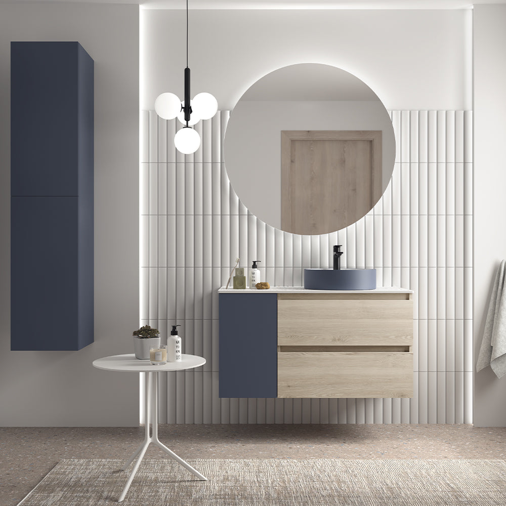 Descubre el equilibrio perfecto entre diseño contemporáneo y calidez natural con el Conjunto SPIRIT 100 cm Natural de Salgar. Este conjunto transforma tu baño en un espacio moderno, funcional y lleno de estilo gracias a la combinación del acabado Natural con detalles en Night Blue, creando un contraste sofisticado y armonioso.