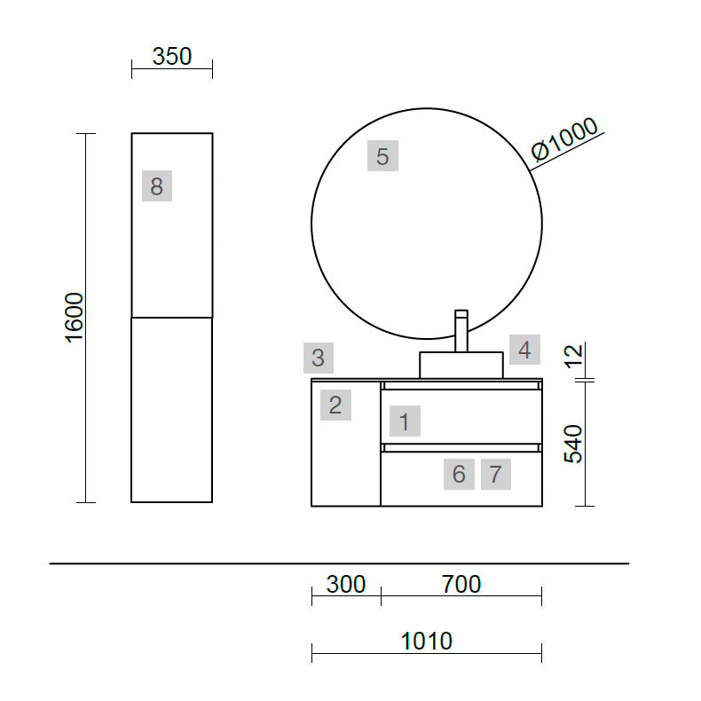 • Espejo MOON 1000 circular con luz (4,4 W/m - 4000ºK.) IP44 d 1000 mm (opcional)