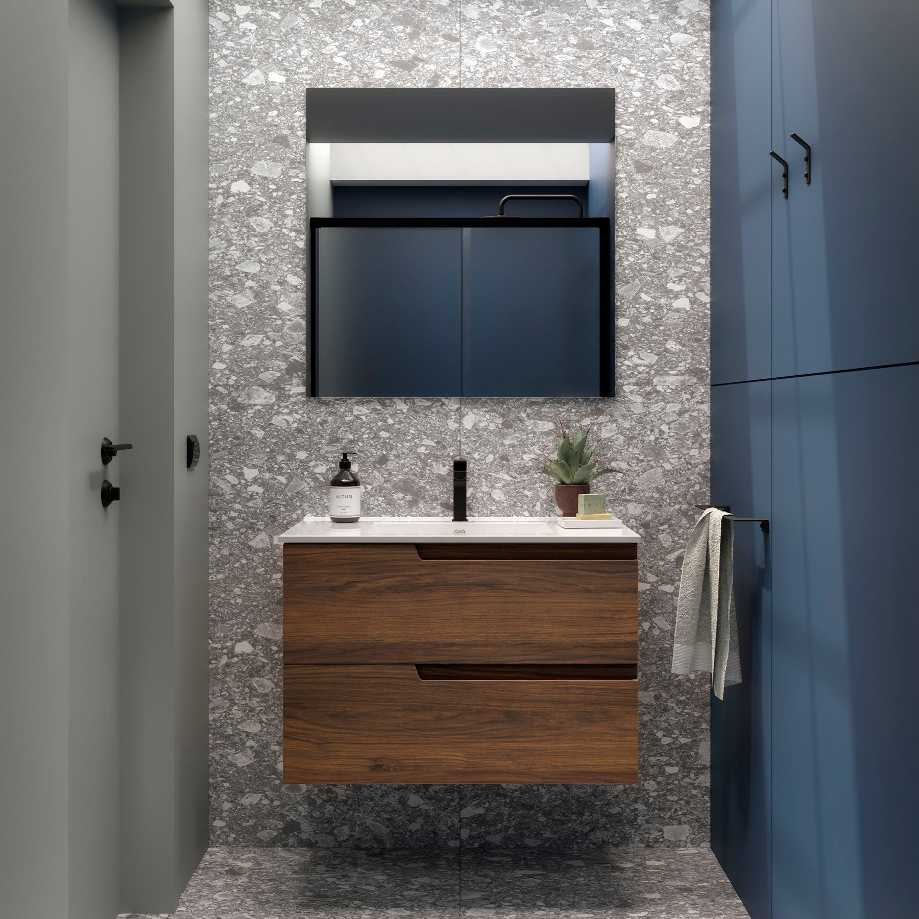 El mueble de baño VIMA está disponible en cuatro acabados actuales y elegantes:
