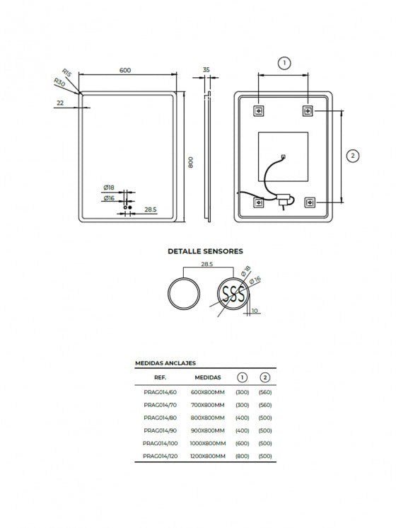 Disponible en medidas de 60, 70, 80, 90, 100 y 120 cm de ancho con 80 cm de altura, el espejo LED Praga de Ledimex es la opción perfecta para quienes buscan estilo, calidad y tecnología en su cuarto de baño.