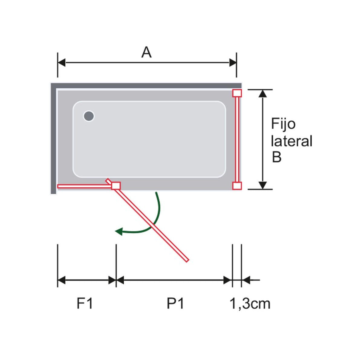 Importante: cuando el frente de ducha va acompañado de 1 lateral fijo, el frontal de la ducha aumenta 1,3 cm como muestra el dibujo. Antes de realizar su pedido, tengan en cuenta esta circunstancia. Ver Croquis.