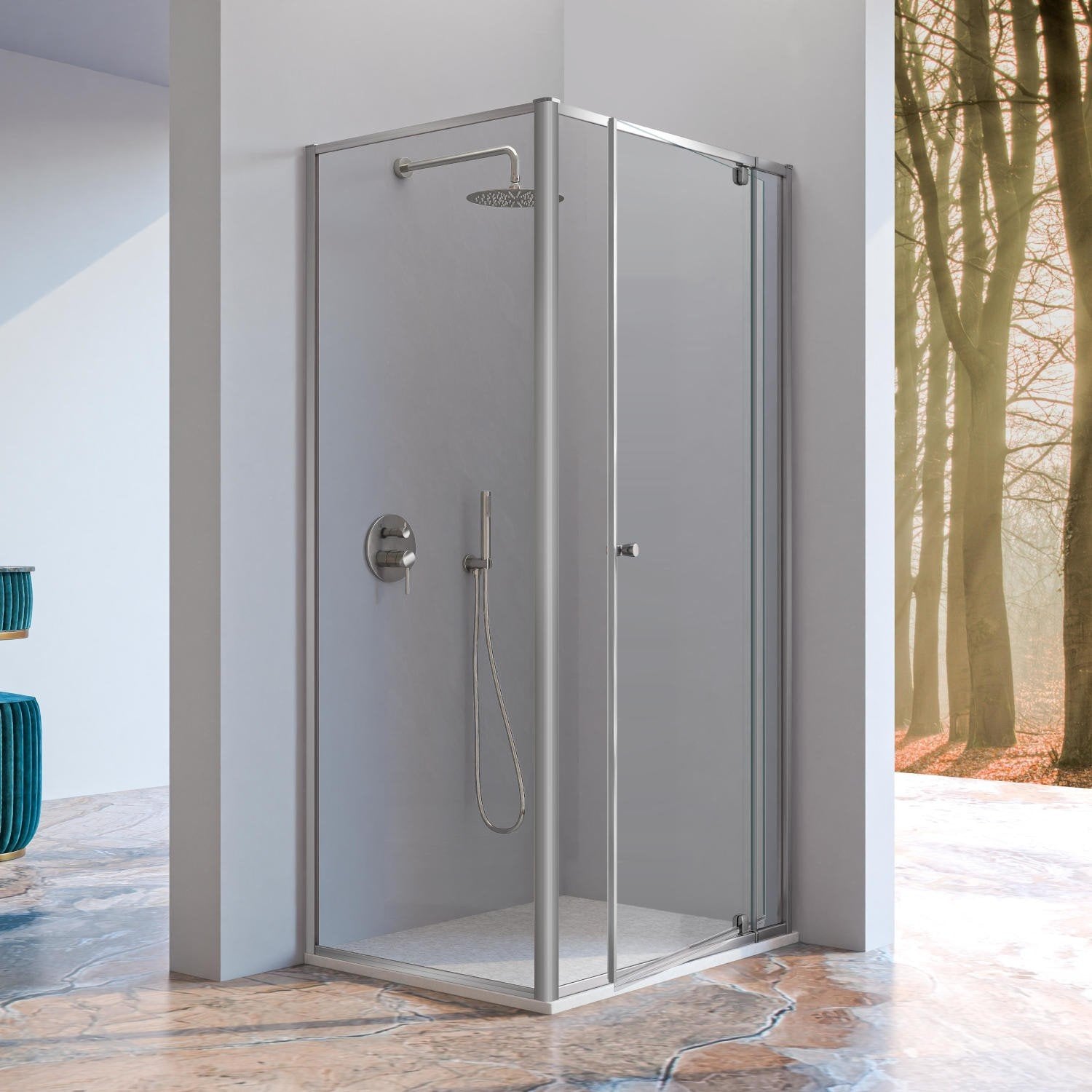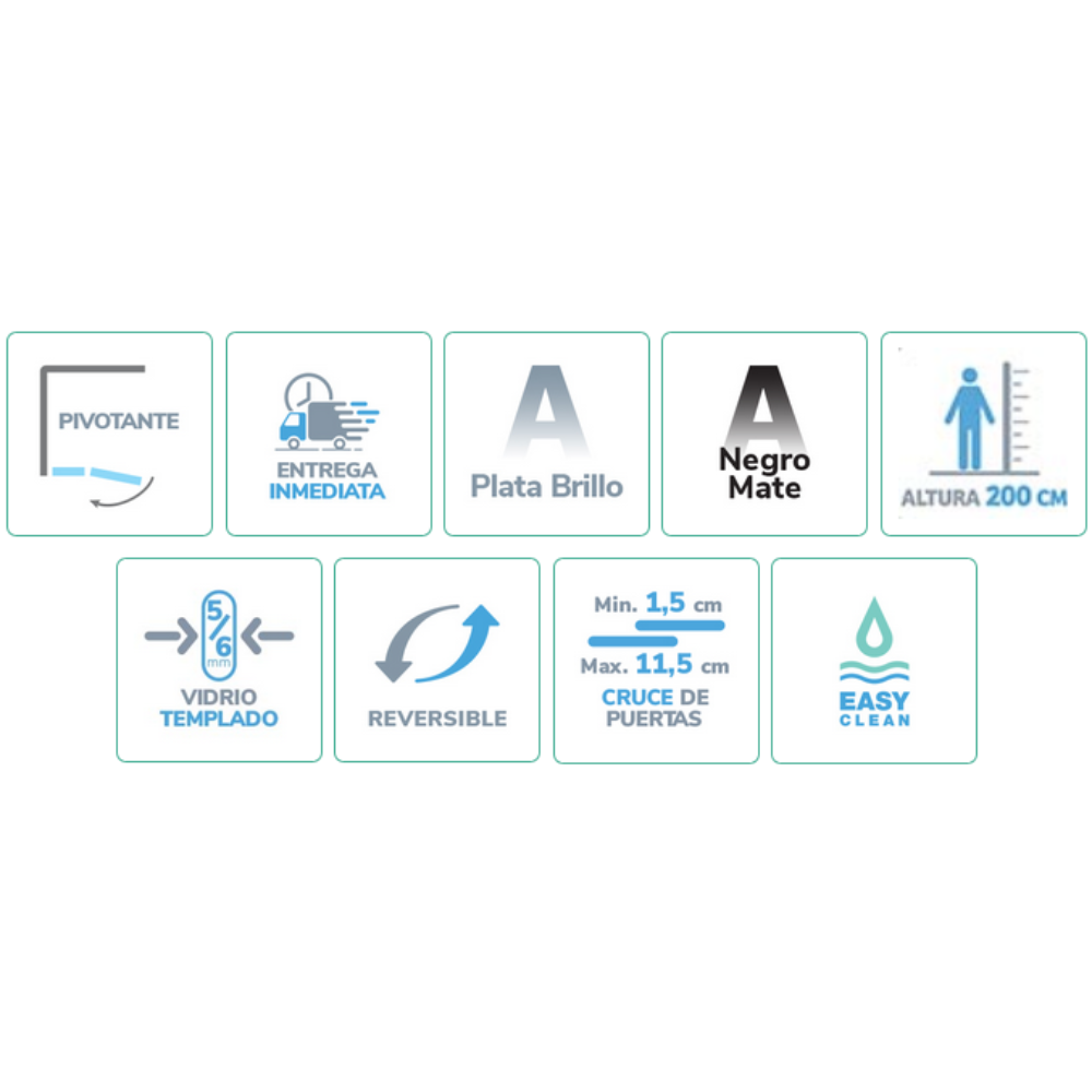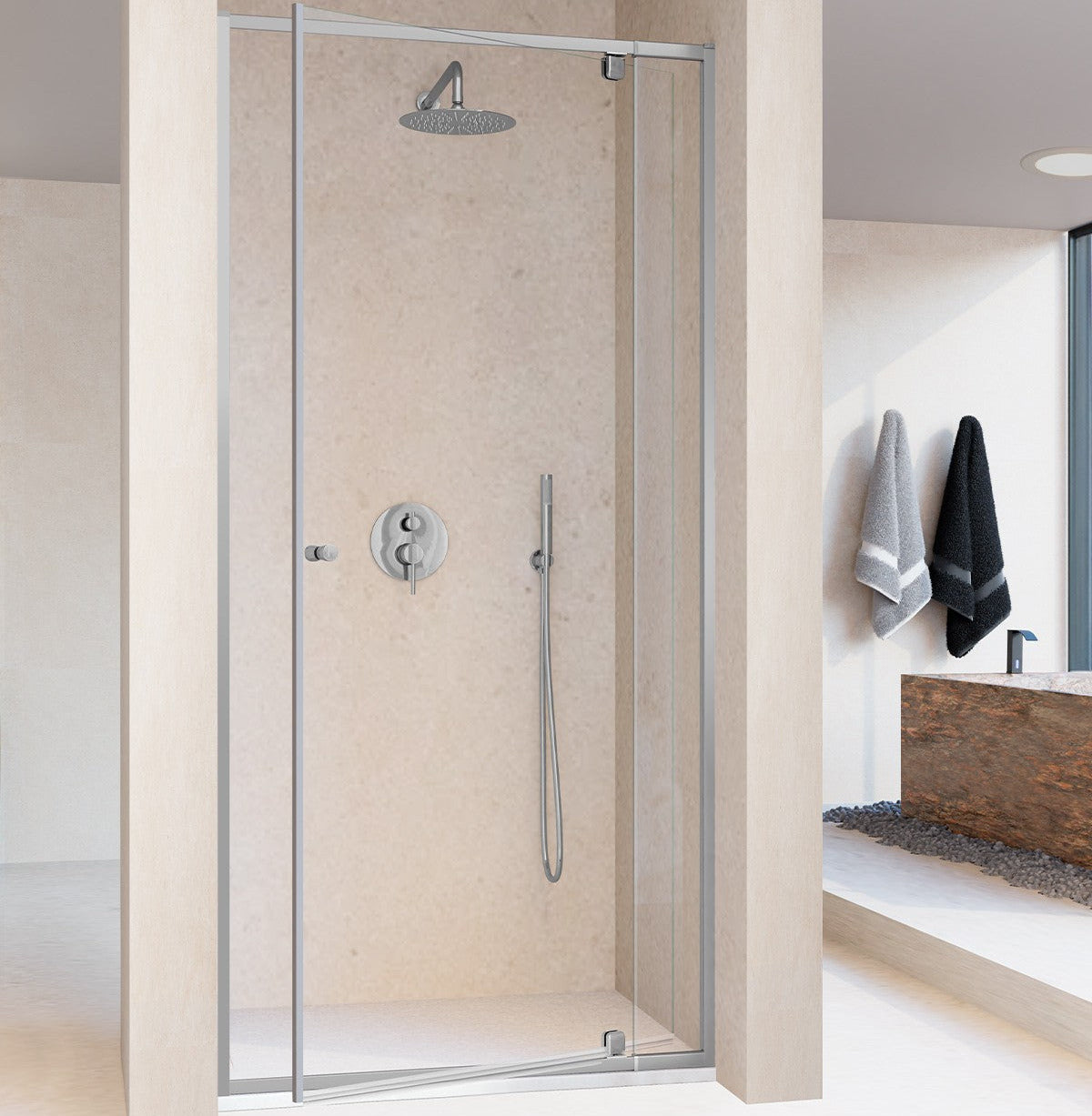 Renueva tu baño con la mampara de ducha PIVOT PV503 de Kassandra, una combinación perfecta entre estilo contemporáneo, comodidad y funcionalidad. Su diseño frontal con una hoja fija y una puerta abatible pivotante ofrece una apertura de 90° que facilita el acceso y optimiza el espacio, ideal tanto para baños amplios como para los más compactos.