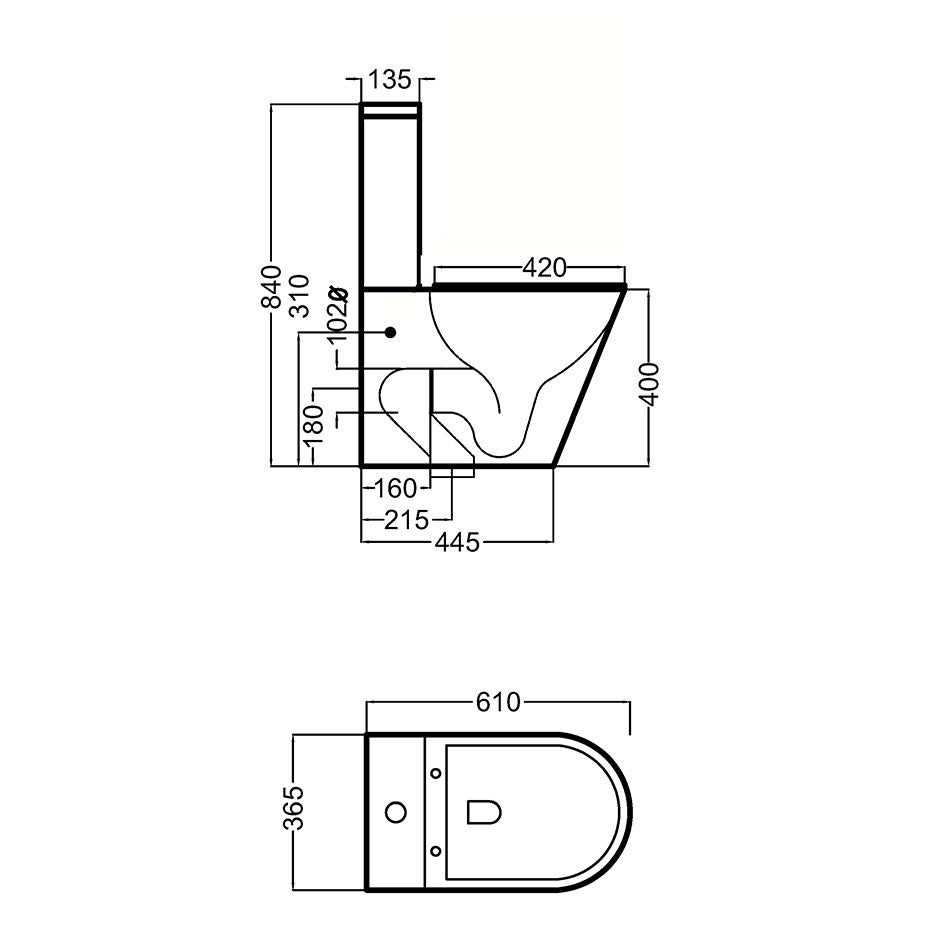 • Inodoro de fondo reducido con solo 61 cm de largo. Ideal para ahorrar espacio en el baño.