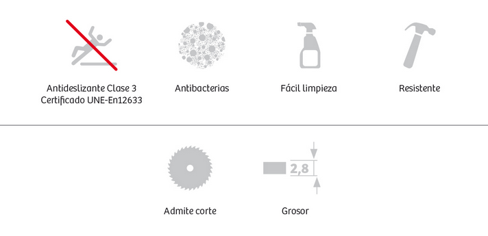 ✔ Resistente a rayaduras, productos químicos y cambios de temperatura.