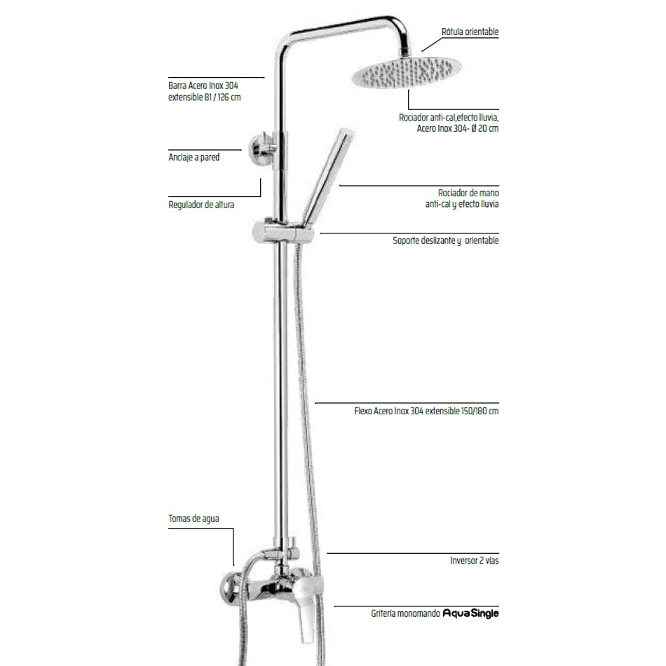 Kit Ducha MALLORCA Aquassent | Monomando Central | Rociador Redondo | Barra Extensible 81-126 cm
