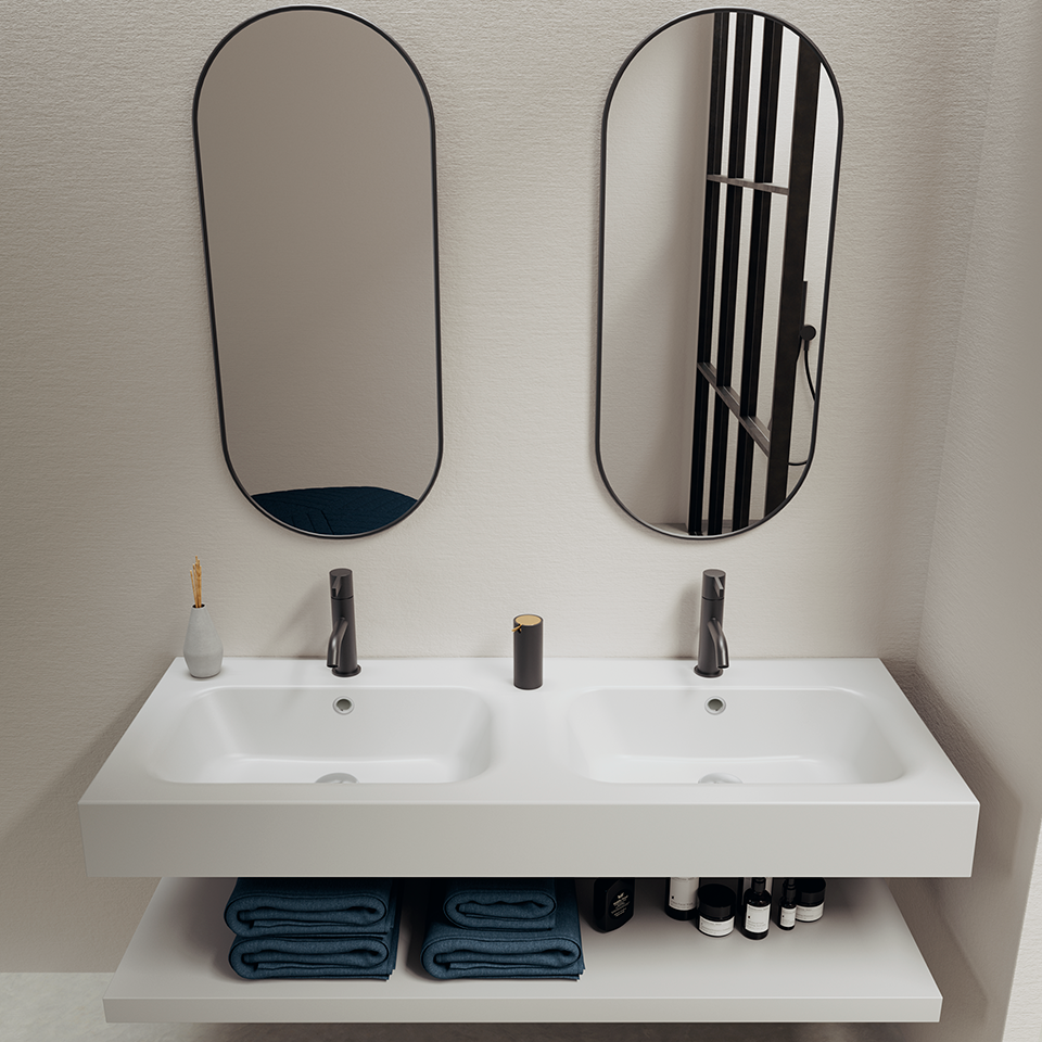 Con su diseño de doble seno, este lavabo es ideal para baños compartidos o familias que buscan mayor funcionalidad y espacio sin perder la elegancia característica de los productos OhMyShower.