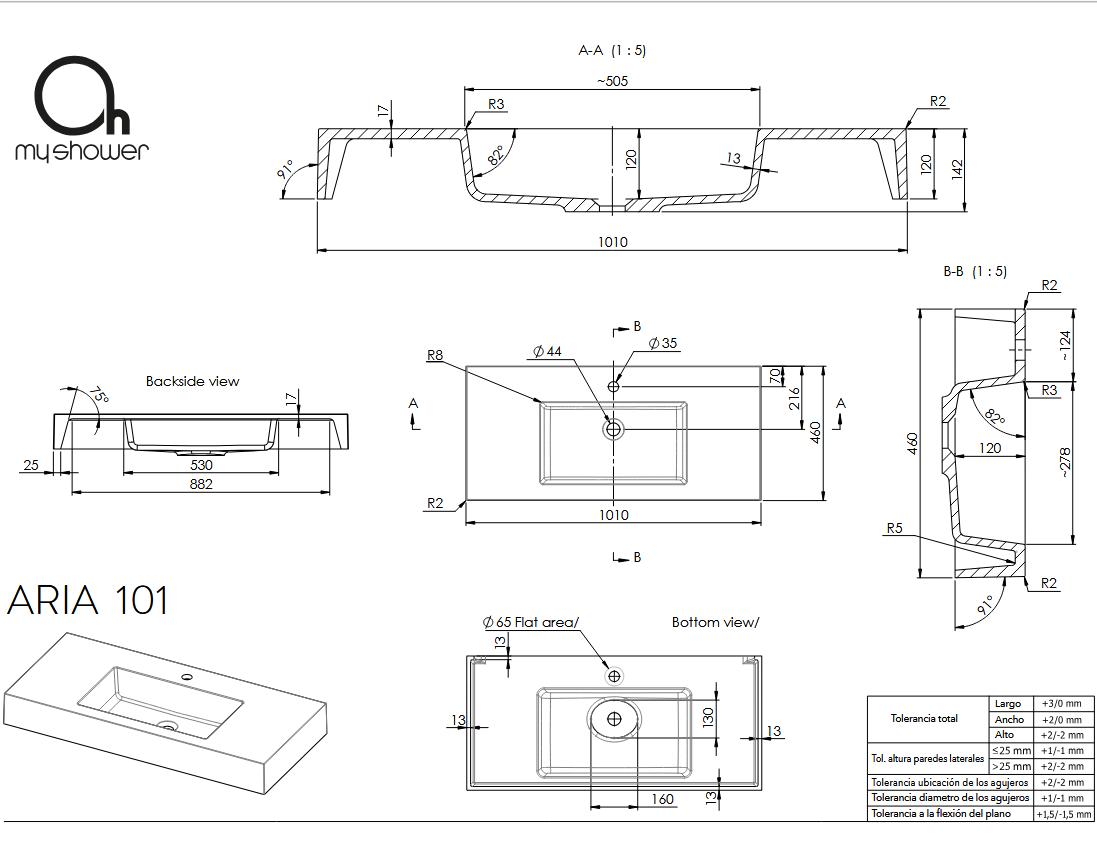 Características del Lavabo ARIA Centrado OhMyShower