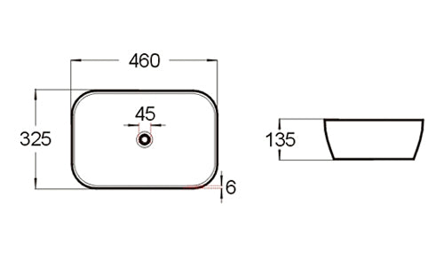 Lavabo Porcelana Cerámica Extrafina HORUS 45,5x32x13,5 Sobre Encimera
