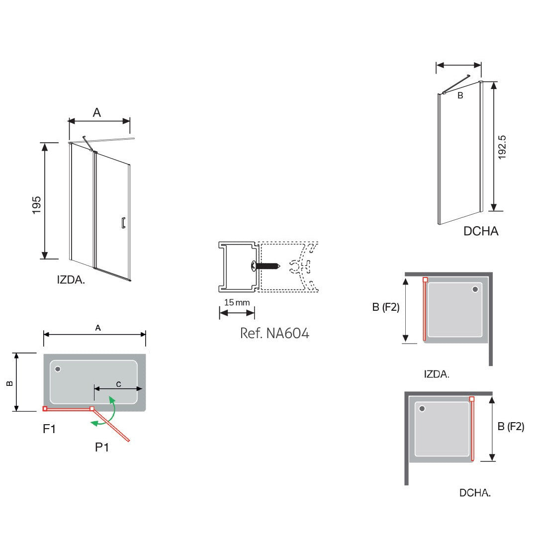 Con una altura de 195 cm y distintas medidas disponibles, la mampara de ducha Nardi NA508 de Kassandra se adapta a múltiples configuraciones, ofreciendo siempre una instalación fácil y segura.