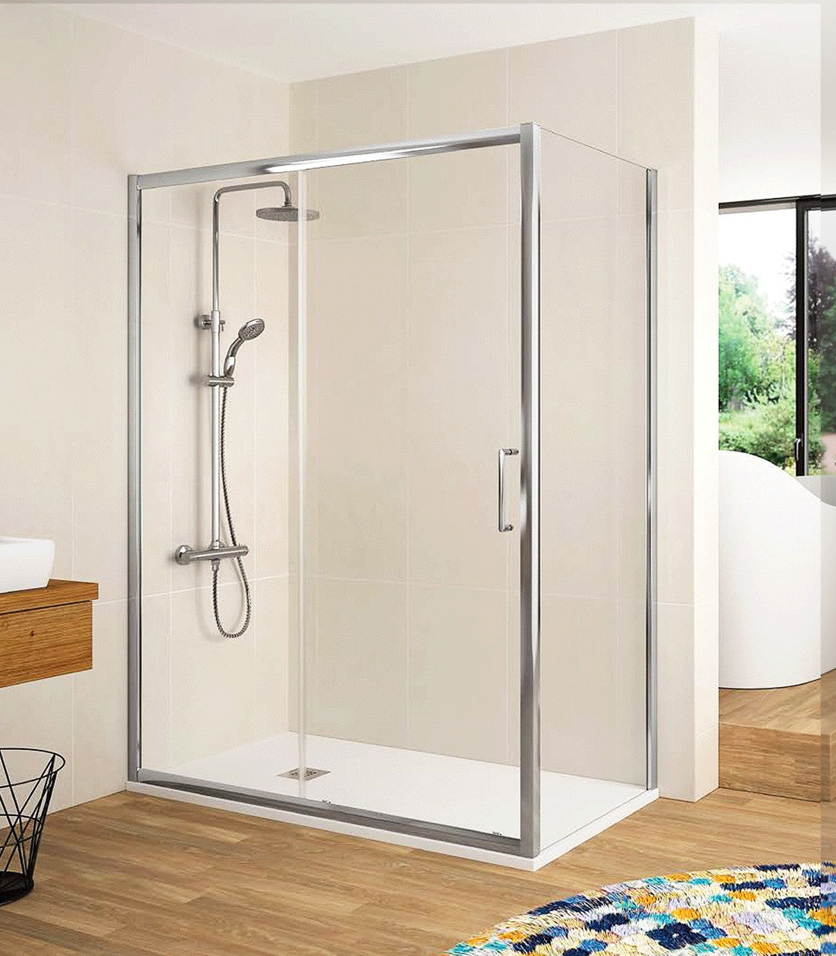Mampara de Ducha Frontal BELLA BL102 | Frente Fijo más Puerta Corredera | Rodamientos Dobles yRegulables