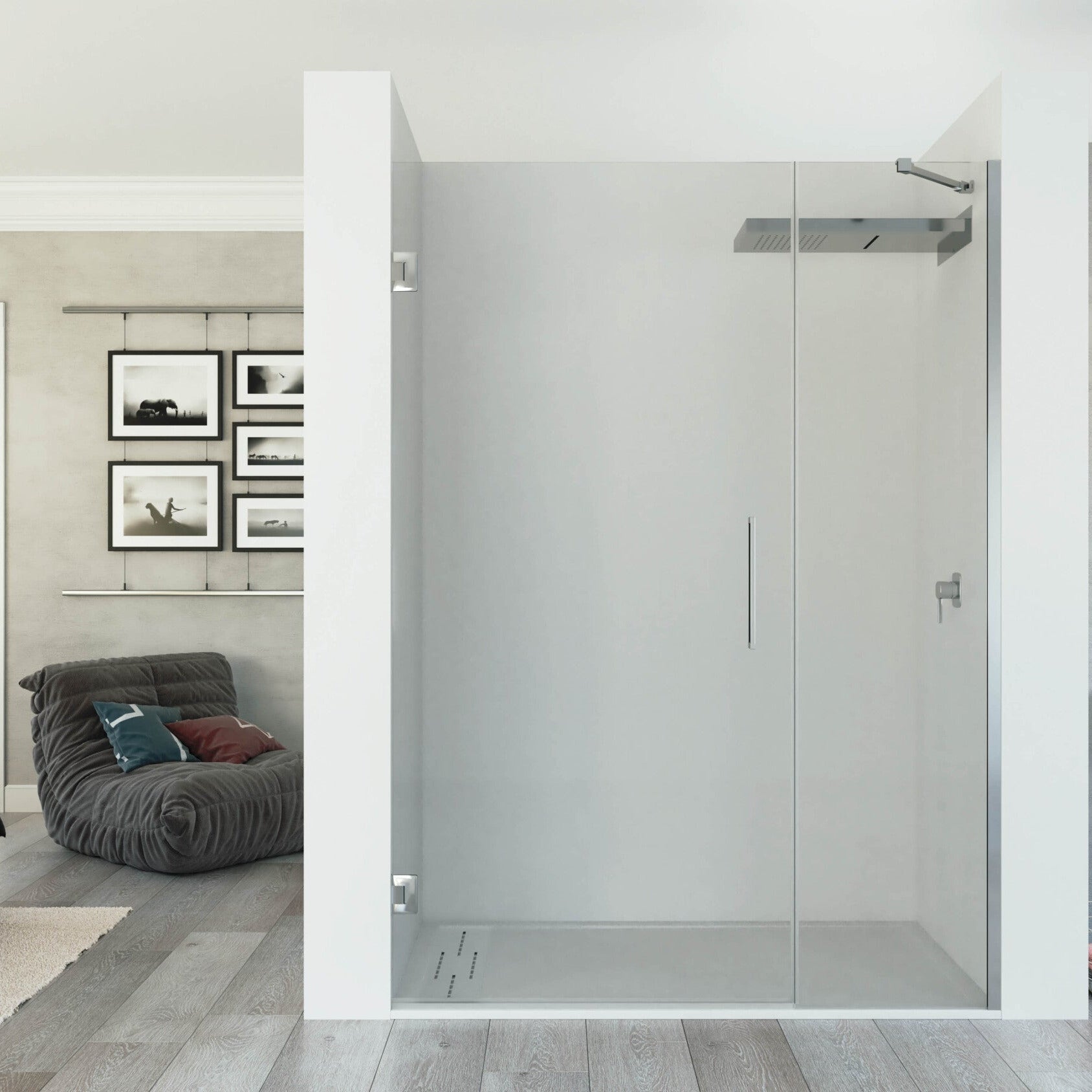 Mampara de Ducha Frontal KRATOS de Seviban. Puerta con Bisagras y Fijo, a Medida