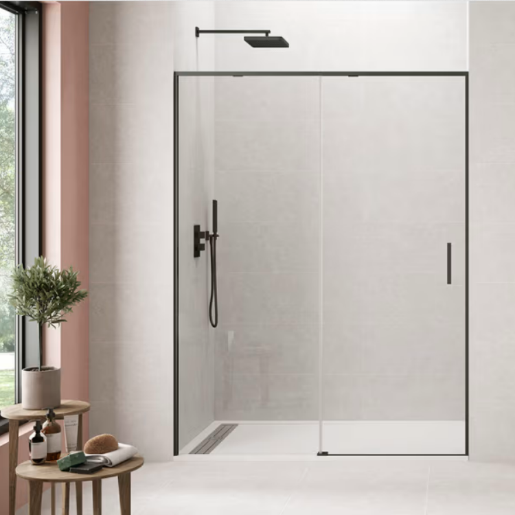 Su configuración de 1 hoja fija + 1 puerta corredera, con opción de añadir lateral fijo, ofrece versatilidad y comodidad en la instalación. Además, es reversible, por lo que puede montarse a izquierda o derecha según las necesidades del baño.