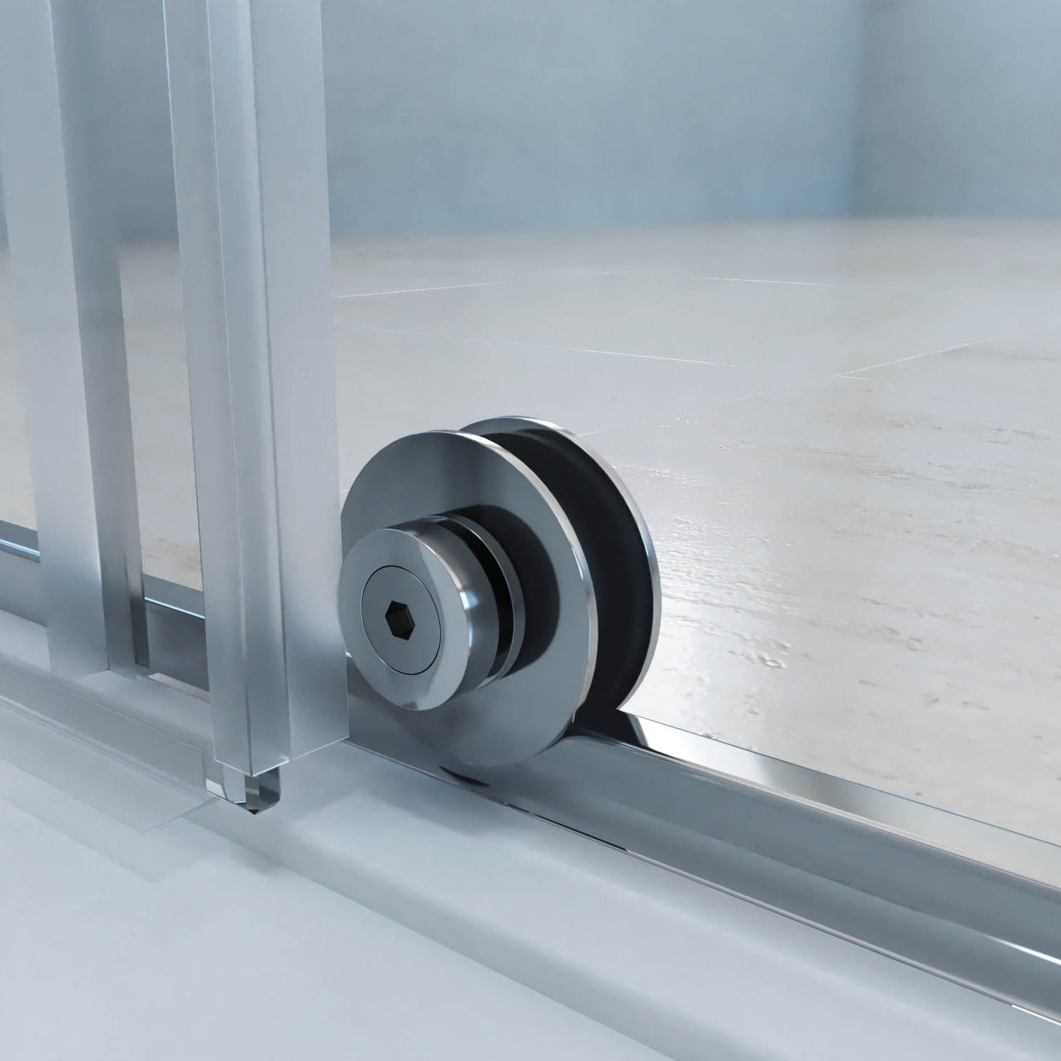 • Sistema de deslizamiento suave: rodamientos cromados con aro de nylon sobre carril de solo 11 mm, para un movimiento fluido y silencioso.