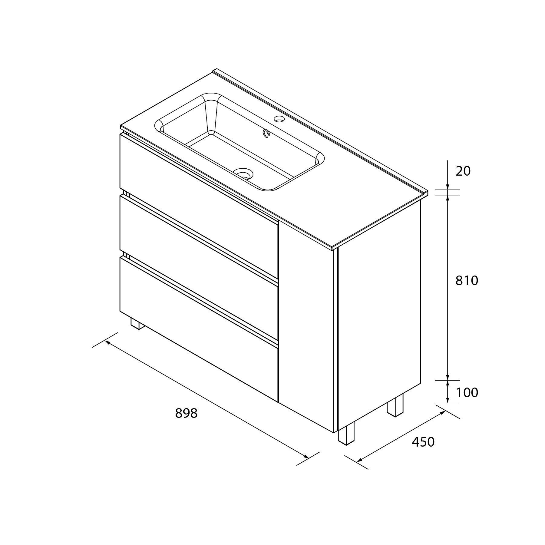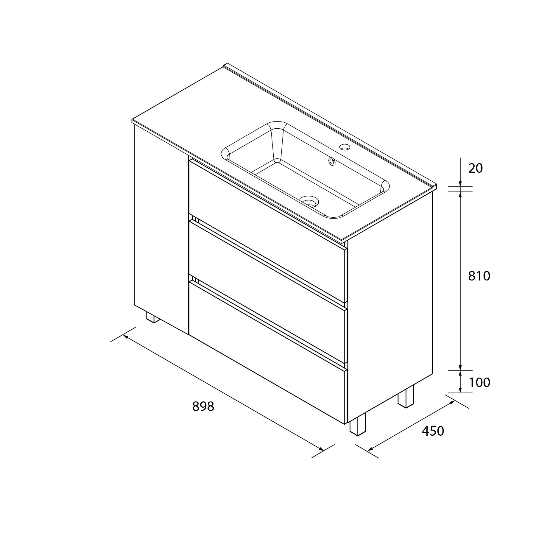 Mueble Bequia Plus 90 cm – 3 Cajones + 1 Puerta con Lavabo