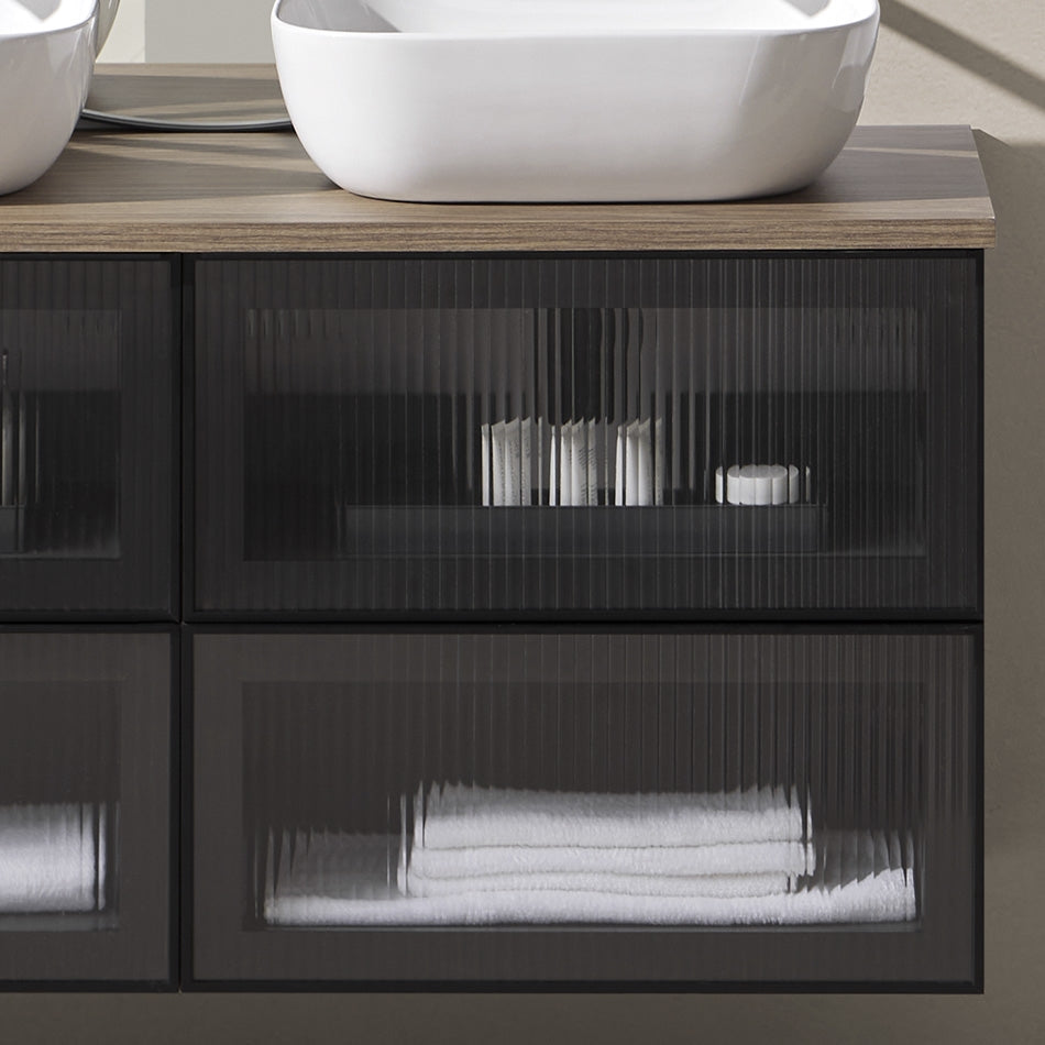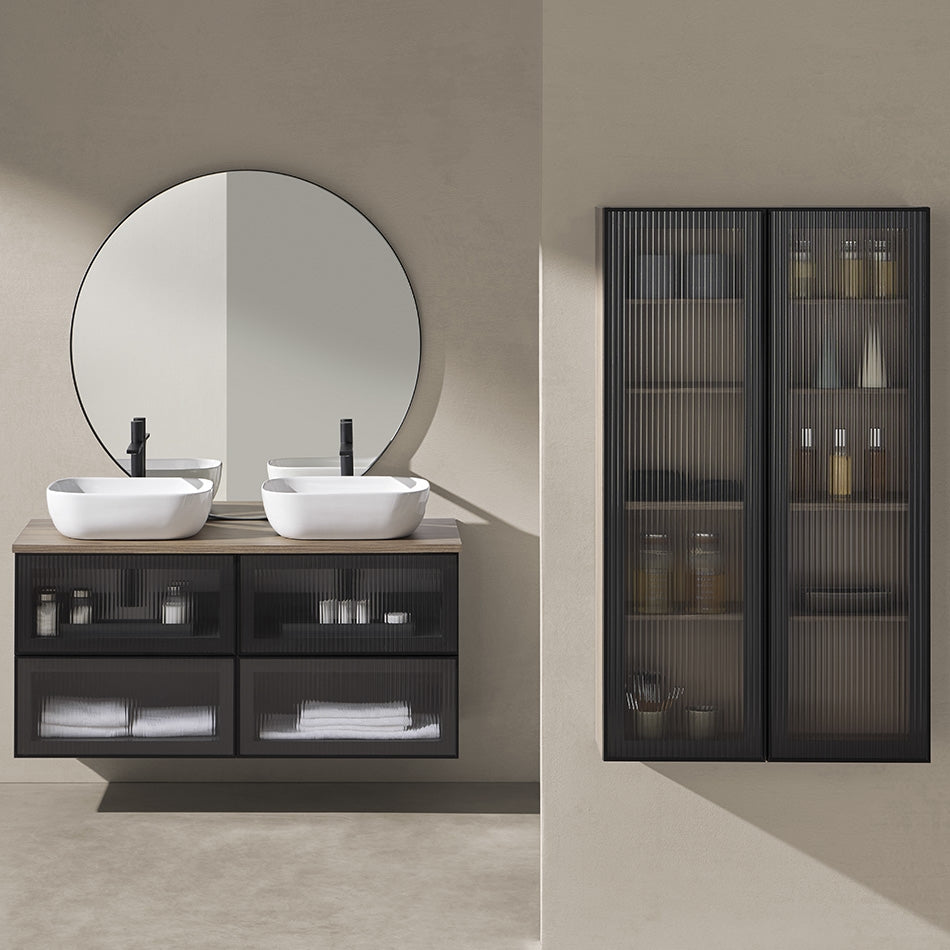 Mueble Baño Suspendido KOBA Sanchis | Frente a Elección (Rejilla/Cristal) | 2 Cajones Metálicos GRASS