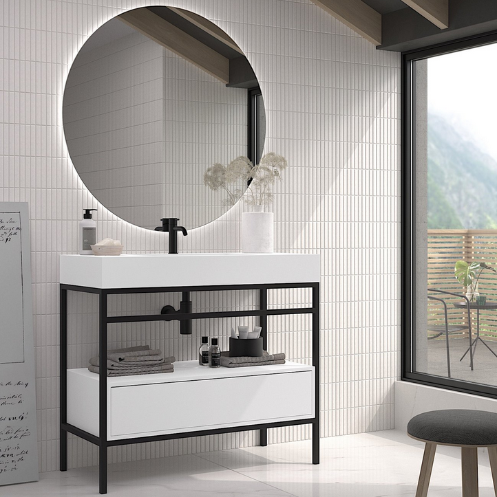 - Mueble de baño con estructura metálica negra