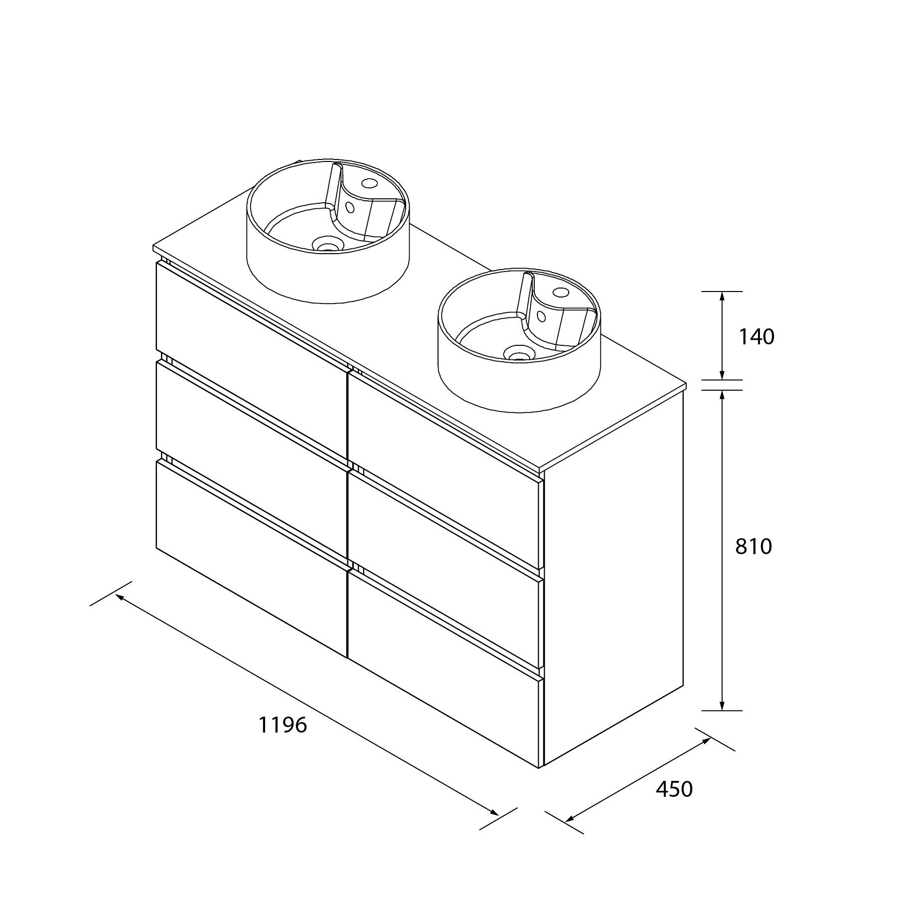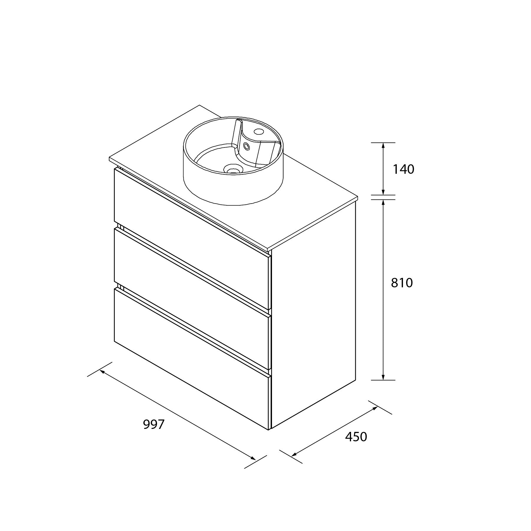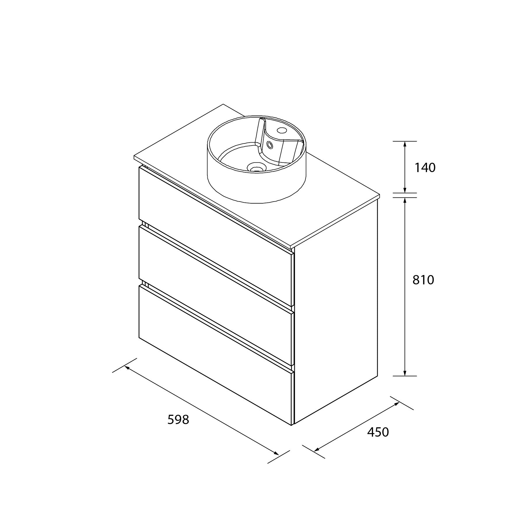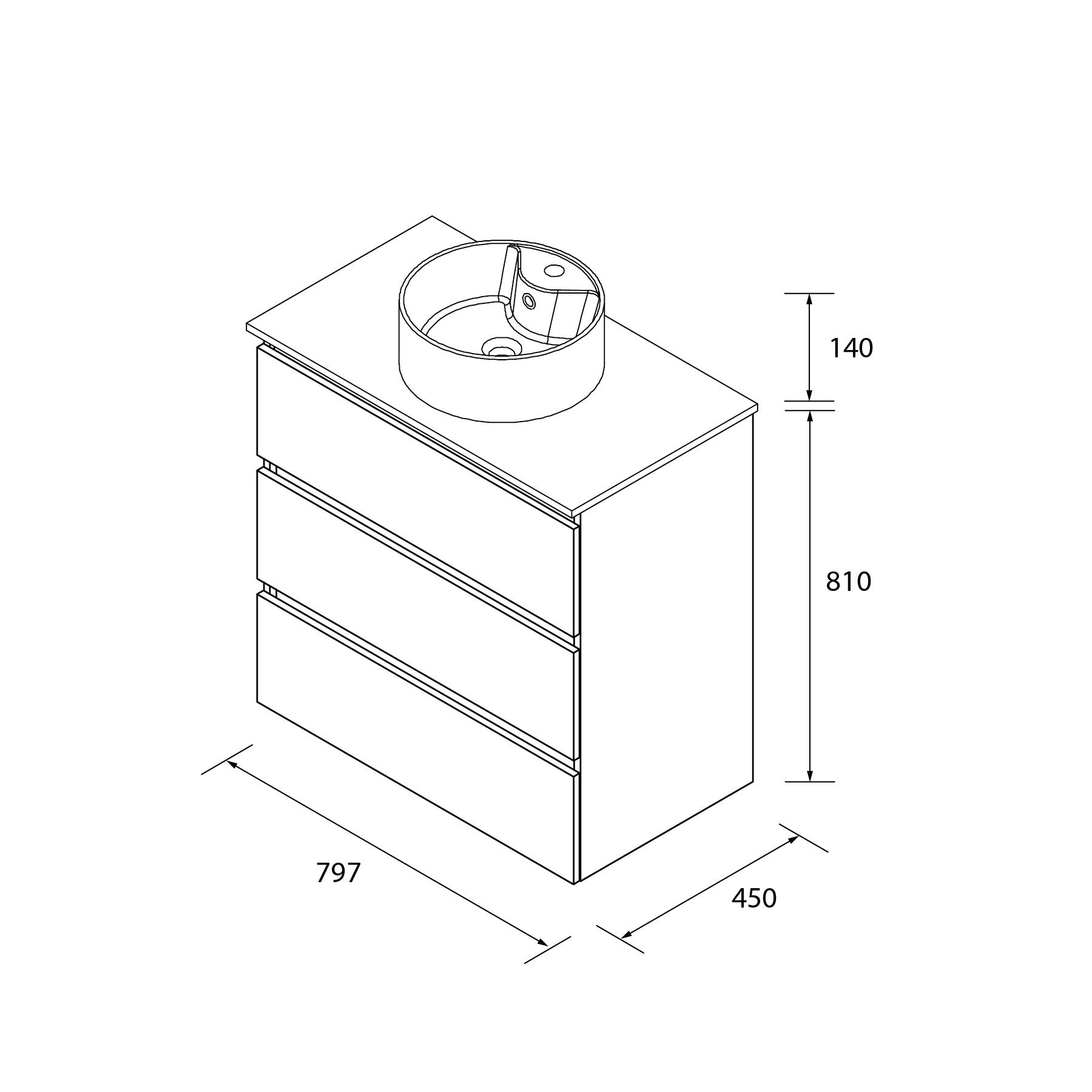 Mueble de Baño BEQUIA 3 Cajones con Lavabo Sobre Encimera