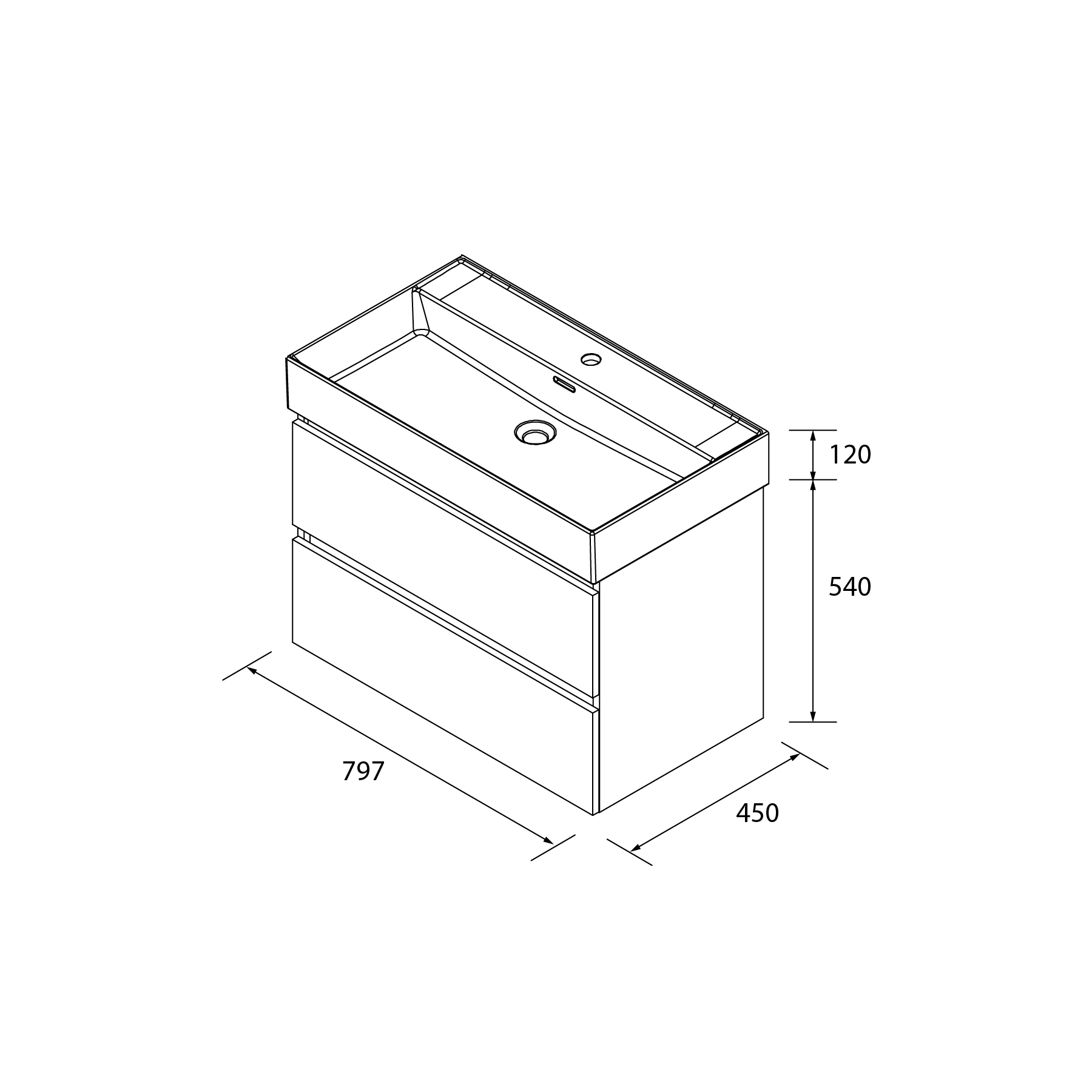 - Mueble de baño suspendido de dos cajones