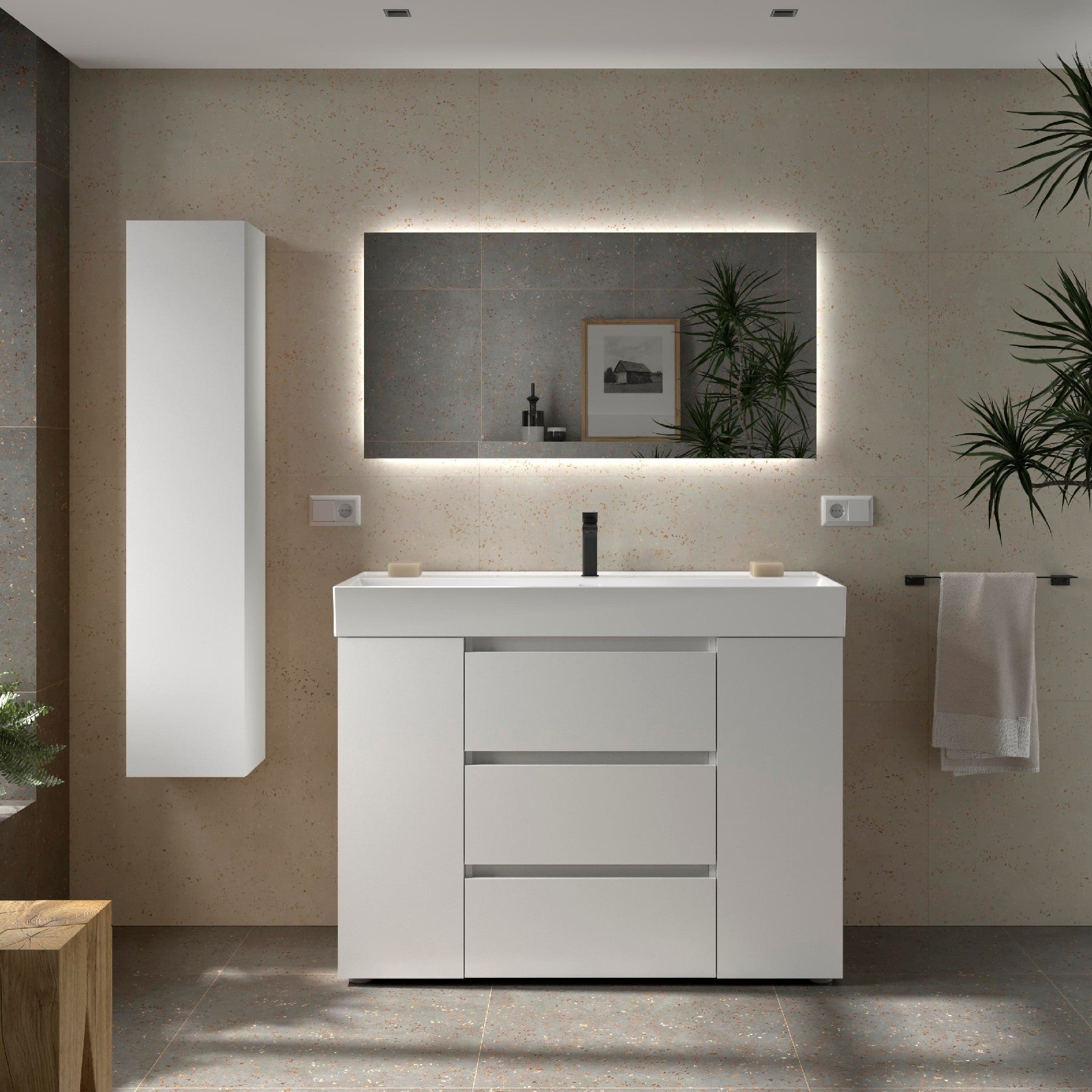 Descubre el mueble de baño BEQUIA PLUS 3C de 120 cm con lavabo Veneto centrado, una opción perfecta para quienes buscan funcionalidad, elegancia y calidad duradera en un solo conjunto.