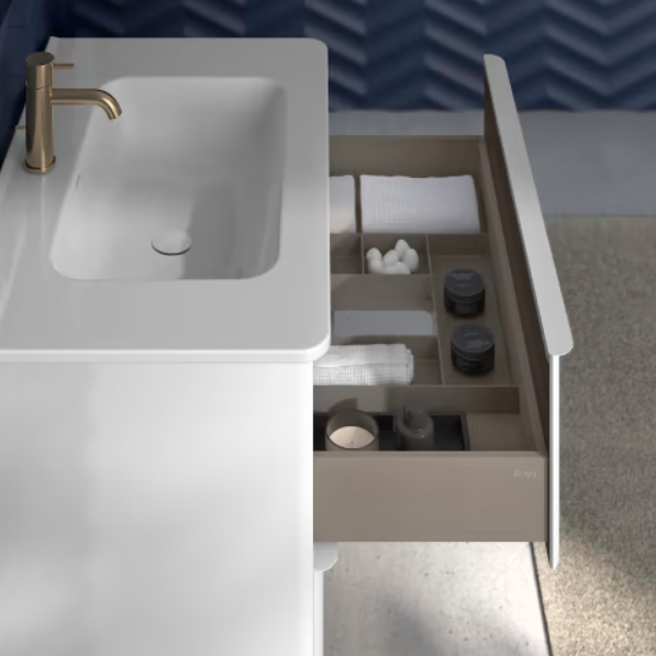 El mueble Dai de Royo es una opción moderna, práctica y elegante para crear un baño funcional y con personalidad.