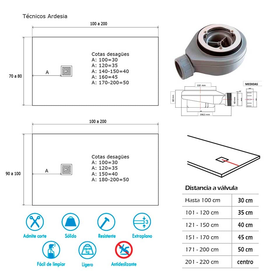 Gracias a su innovadora composición con gel coat sanitario de alta calidad, el Ardesia Plus ofrece una resistencia superior a la torsión y los impactos, al tiempo que reduce significativamente su peso. Además, mantiene todas las ventajas de los platos de ducha en resina: tacto cálido, durabilidad y fácil mantenimiento.