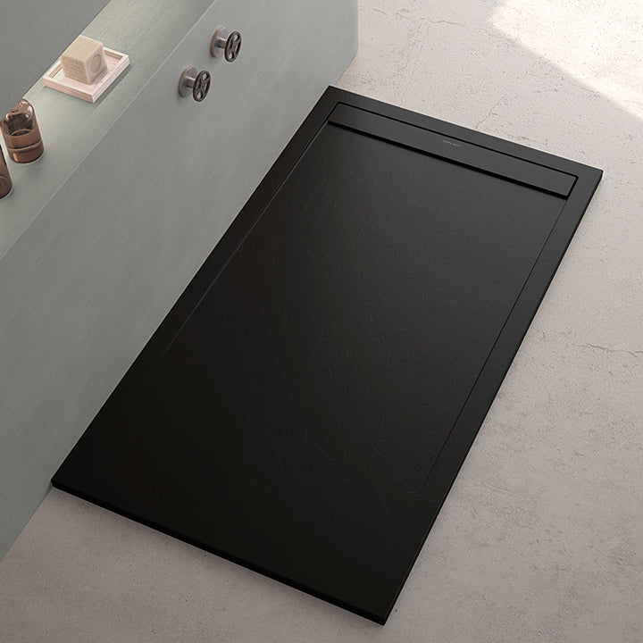 Con solo 3 cm de grosor, este plato combina diseño minimalista y accesibilidad, perfecto para baños modernos y seguros. Está disponible en dos acabados: textura lisa o textura pizarra, para que elijas el estilo que mejor se adapte a tu baño.
