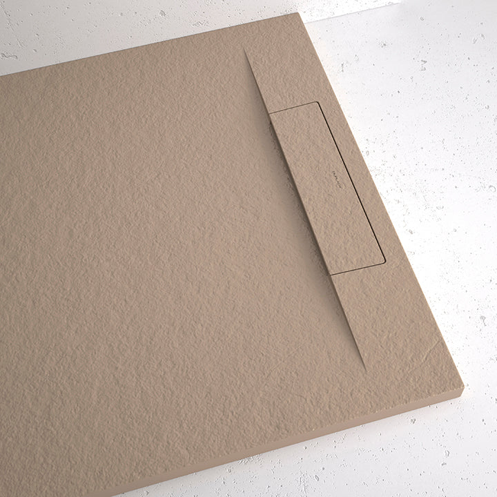Su textura granito le da un aspecto sofisticado y atemporal, aportando personalidad al baño y un tacto agradable y cálido. Con solo 3 cm de grosor, este plato de ducha extraplano mejora la accesibilidad y facilita la limpieza.