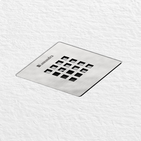 Rejilla de acero inoxidable cuadrada (12,7 x 12,7 cm) incluida junto con la válvula de desagüe de gran caudal (90 mm).