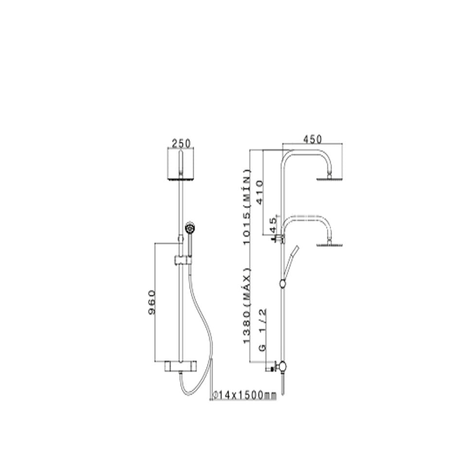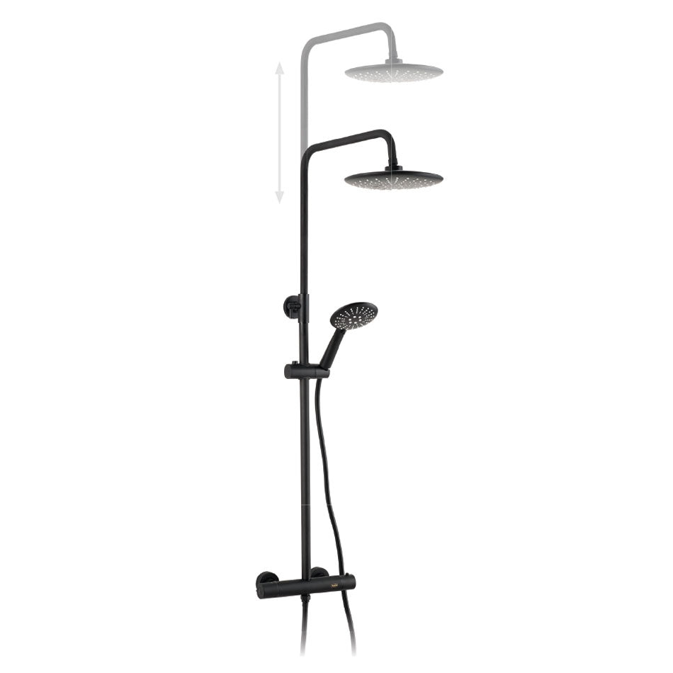 Sistema Ducha Termostática NUCK Buades | Rociador 250 mm | 3 Funciones | Flexible 1.5 m | En Cromo o Negro